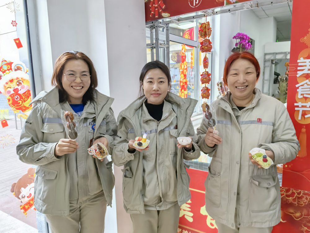 小年當天,現場張燈結彩,美食琳瑯滿目,職工們穿梭在攤位之間,熱烈討論著、認真思考著哪一道菜是“心頭最愛”,“美食誘惑”來襲,征服了職工們的胃,更俘獲了大家的心。美食中藏著對一年辛勤工作的認可,也是新年的美好期許,這份幸福感化作源源不斷的動力,為企業高質量發展提供堅實支撐。